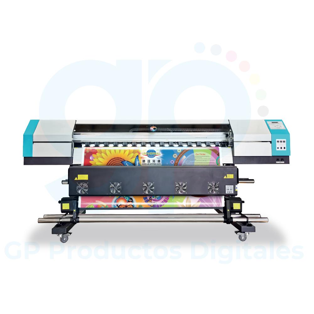 Impresora para lonas y viniles, ancho de 1.60 metros, con capacidad de 1 o 2 cabezales i3200, alta velocidad, calidad fotográfica y bajo costo por metro cuadrado.