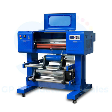 Impresora de DTF UV en rollo, tecnología de curado UV, con tinta blanca, color y barniz, 0.60m de ancho, con 3 cabezales F1080, alta velocidad, calidad fotográfica, alta duración y bajo costo en impresión de stickers transferibles a artículos promocionales, personales y decorativos de todo tipo.